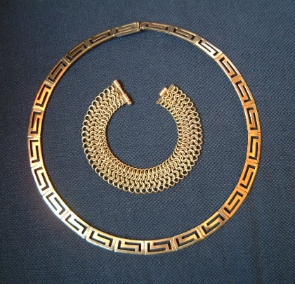 “Greek Key Chocker” 19XX, 14Kt YG, black pearls, diamonds, XX x XX cm