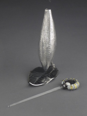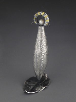 “Host(ess): Monarch”, 2008, Sterling, Copper, Enamel, Pearl, 15.5 x 9.5 cm