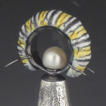 “Host(ess): Monarch”, 2008, Sterling, Copper, Enamel, 15 x 5 9.5 cm