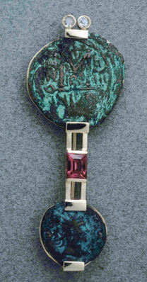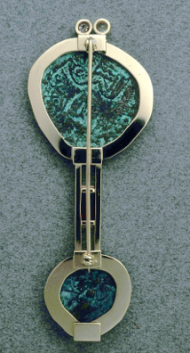 Roman Coin Brooch, 14K, Synthetic Alexandrite, Rose Cut diamonds, Roman Coins, X x X cm